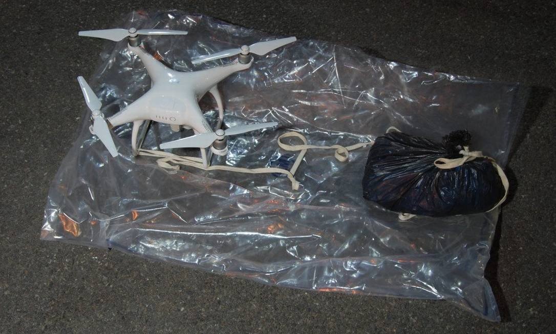 No drone estavam quatro celulares, carregadores e duas serras. A Polícia investiga o caso.