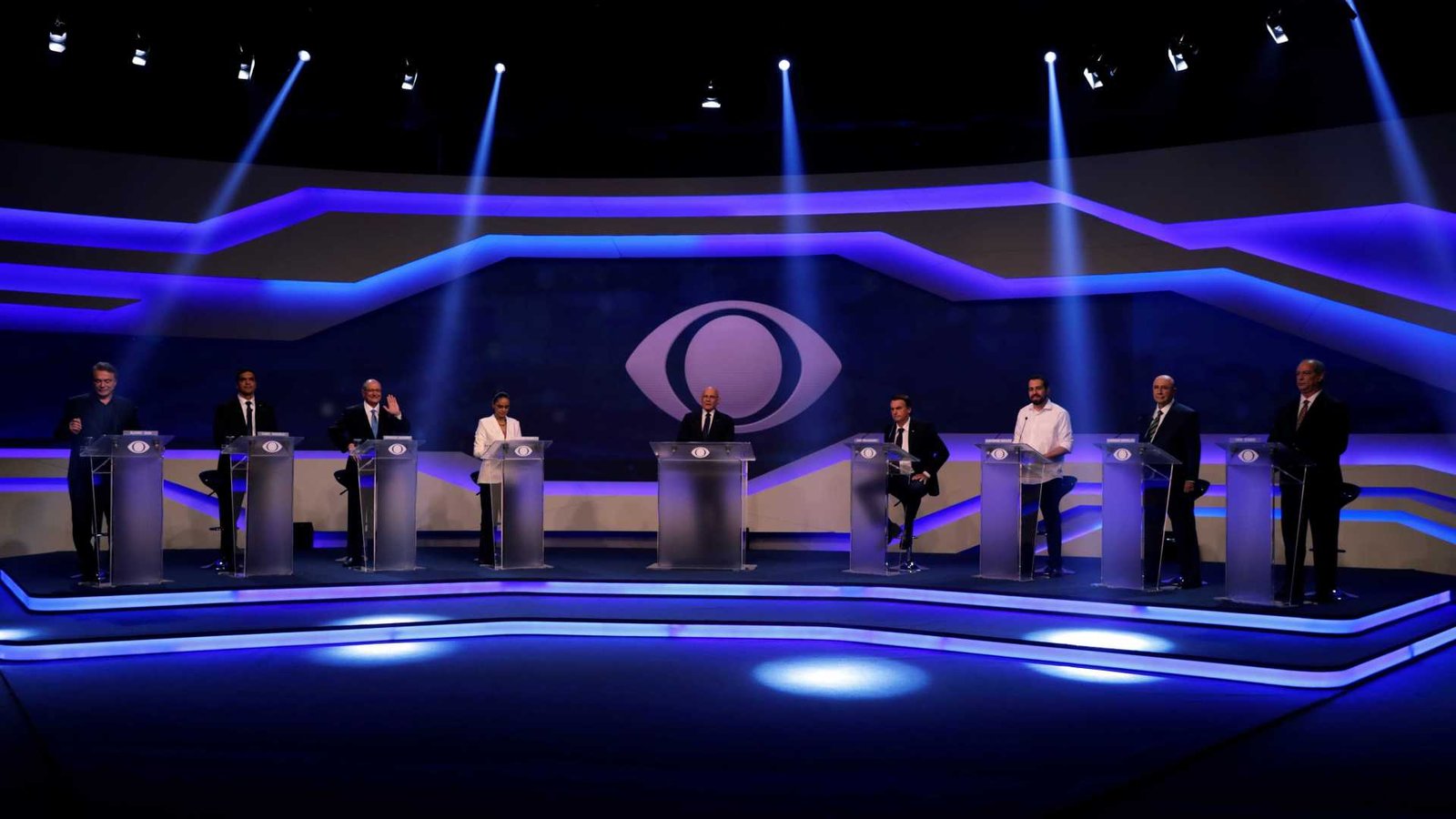 Dos 13 candidatos à Presidência definidos nas convenções, apenas oito participaram do debate: além de Bolsonaro, Alckmin, Ciro, Boulos e Daciolo, foram convidados Marina Silva (Rede), Álvaro Dias (Podemos) e Henrique Meirelles (MDB).