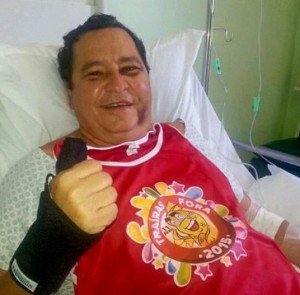 Internado no Hospital Unimed João Pessoa desde a última sexta-feira (6), após sofrer um atropelamento, o deputado estadual Anísio Maia (PT) se deixou fotografar dentro do leito hospitalar com a camisa do bloco “Traíras Fora”, idealizado pelo gabinete do parlamentar petista.