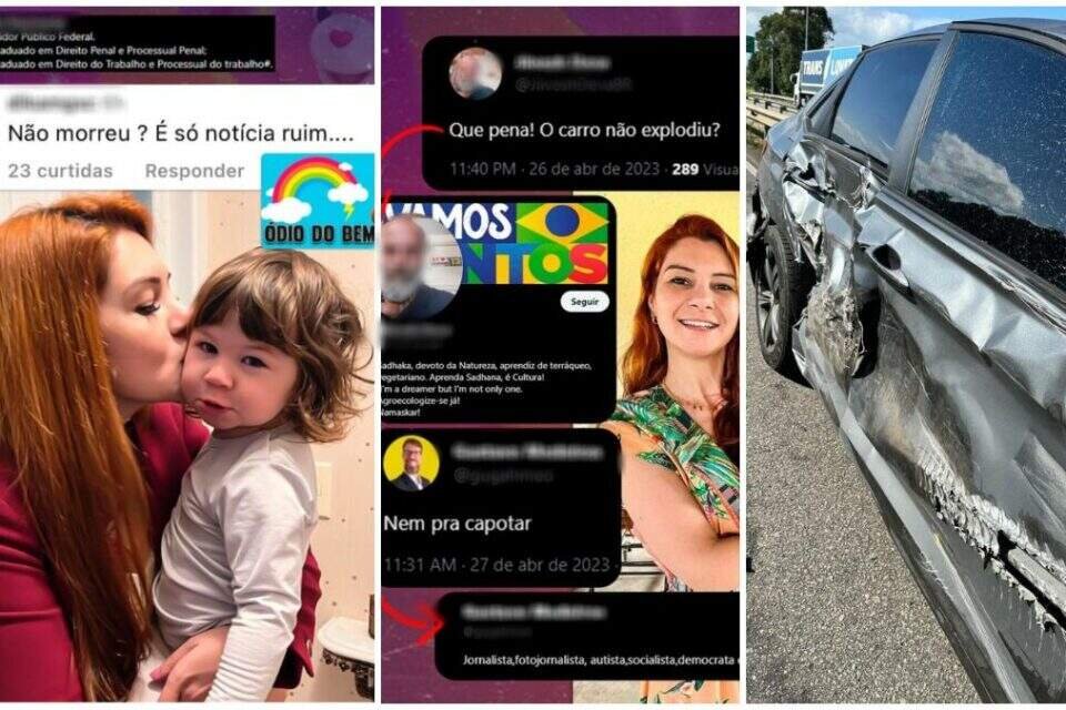 A parlamentar divulgou em seu perfil do Instagram comentários de apoiadores do presidente Lula (PT), na postagem em que ela relatou o acidente em que seu carro foi prensado. Um deles, do perfil que se identifica como sendo de um servidor público federal afirmava: “Não morreu? É só notícia ruim…”.