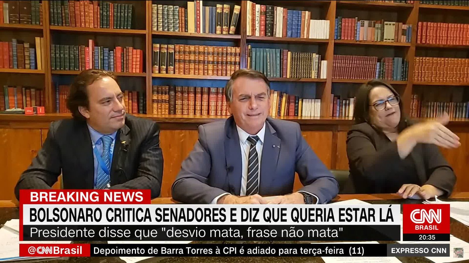 “Eu queria estar na CPI. ‘Atenção aí ministro, qual dessas frases mais matou gente no Brasil, frase do presidente Jair Bolsonaro’ e botou várias frases lá. Sabe qual seria a minha resposta? O prezado senador, frase não mata ninguém. O que mata é desvio de recurso público que o seu estado desviou. Então vamos investigar o seu filho que a gente resolve esse problema, desvio mata, frase não mata. Parabenizo os senadores que têm feito um lado excepcional, não é do meu lado não, é o lado da verdade”.