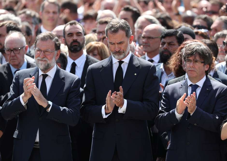 Centenas de pessoas fizeram um minuto de silêncio na Praça de Catalunha nesta sexta-feira (18), em Barcelona, em homenagem às vítimas do atentado terrorista cometido ontem com uma van que atropelou mais de 100 pessoas na zona turística e comercial de Las Ramblas. Os espanhois se reuniram na Praça de Catalunha, que fica em Las Ramblas, junto com o rei Felipe 6º, o chefe de governo Mariano Rajoy, o presidente catalão, Carles Puigdemont, e a prefeita Ada Colau. Após permanecer em silêncio por um minuto, a multidão aplaudiu as vítimas e entoou coros de “não tenho medo”.