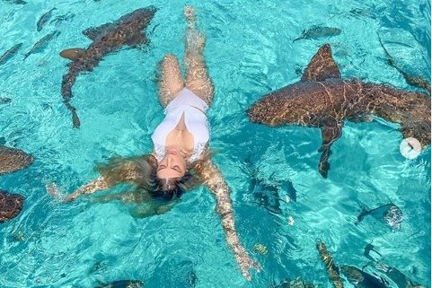 A blogueira Ana Bruna Avila foi surpreendia enquanto nadava junto com tubarões nas Bahamas. Na ocasião, ela tirava fotos enquanto estava cercada por vários deles quando, em um momento, um dos animais nada em direção a influencer e morde seu braço.