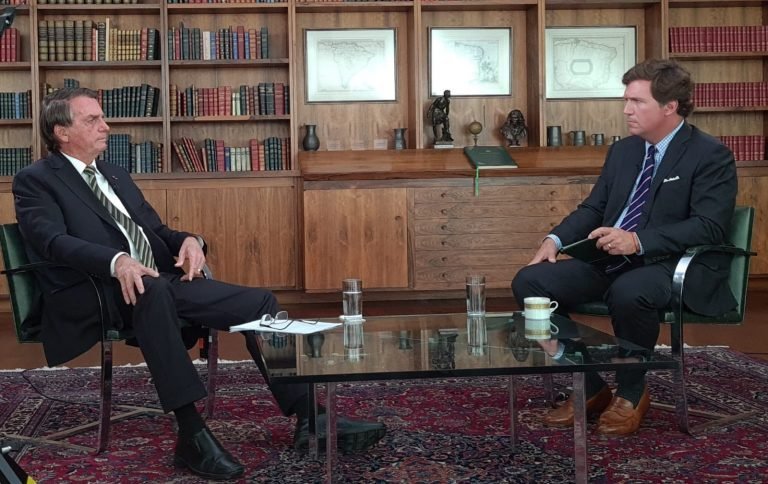 O presidente Jair Bolsonaro (PL) concedeu entrevista ao jornalista norte-americano Tucker Carlson, nesta quarta-feira, 29. O apresentador da Fox News é dono da maior audiência da TV a cabo dos EUA e está no Brasil para gravar uma série de reportagens.