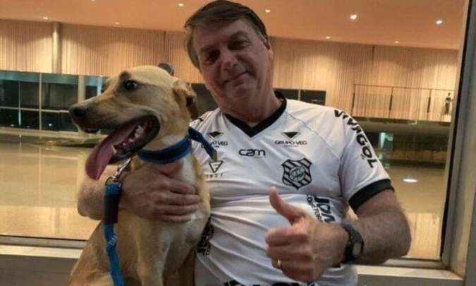 Bolsonaro posa com cachorro e ironiza Doria: ”Vacina obrigatória só no Faísca”