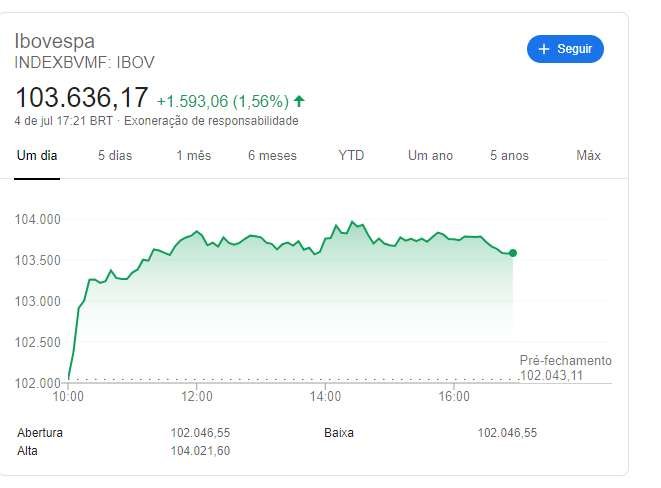 Nesta quinta-feira (04), o mercado financeiro foi agitado pelo melhor índice, já registrado, do Ibovespa. Batendo assim, um recorde de quase 104 mil pontos e com um volume financeiro de R$13,36 bilhões.