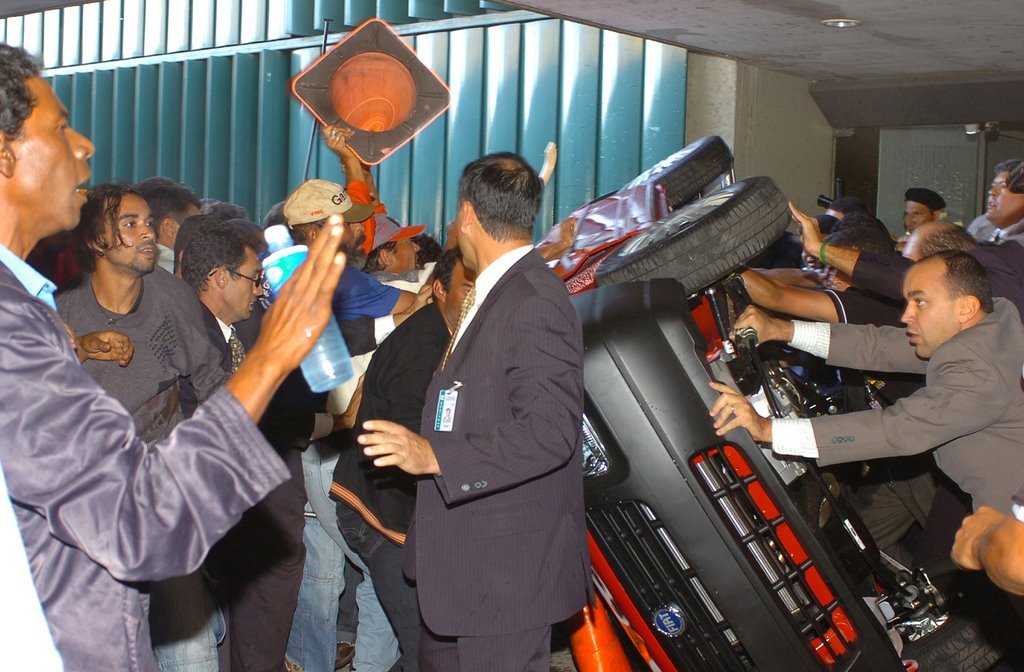 Tocaram o terror por 1h20m. Feriram 41 pessoas, depredaram, invadiram o interior do prédio com um carro e o viraram…