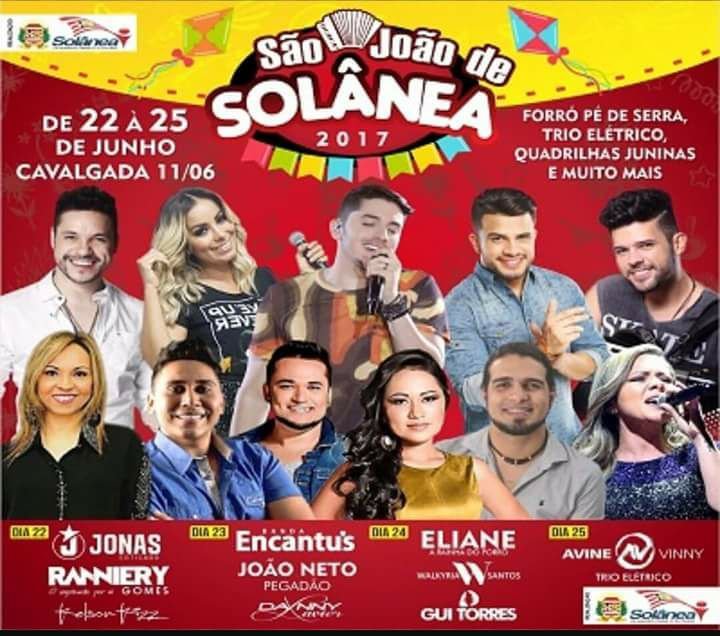 Para o dia 24 de junho foram contratados para a festa, Gui Torres, Eliane e Walkyria Santos. Já o encerramento da festa vai acontecer no dia 25 de junho que vai acontecer com um trio elétrico na rua com show de Avine Vinny.