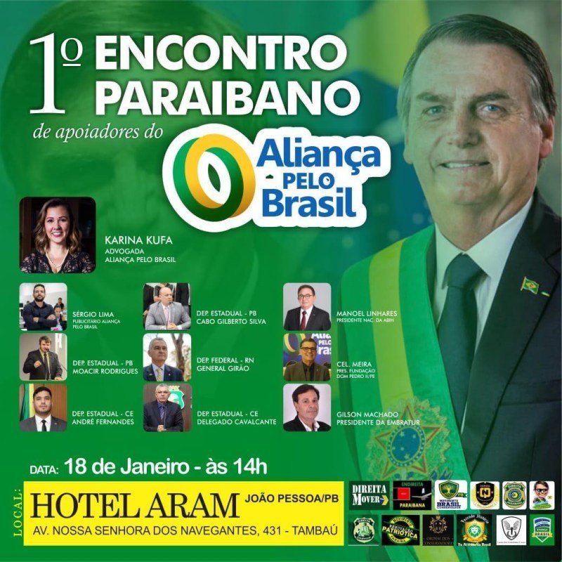 O novo partido do presidente Jair Bolsonaro vai iniciar por João Pessoa a campanha que visa colher assinatura para criação da sigla, o Aliança pelo Brasil. Um encontro está programado para acontecer na tarde do próximo dia 18, em um hotel na Orla da capital paraibana.