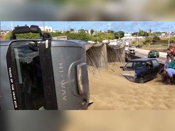 Uma carreta tombou em cima de um carro, no início da tarde desta quinta-feira (17), ao tentar acessar a BR 230 em uma das alças do viaduto das Três Lagoas, no bairro de Oitizeiro, na Zona Oeste de João Pessoa. Não houve feridos.