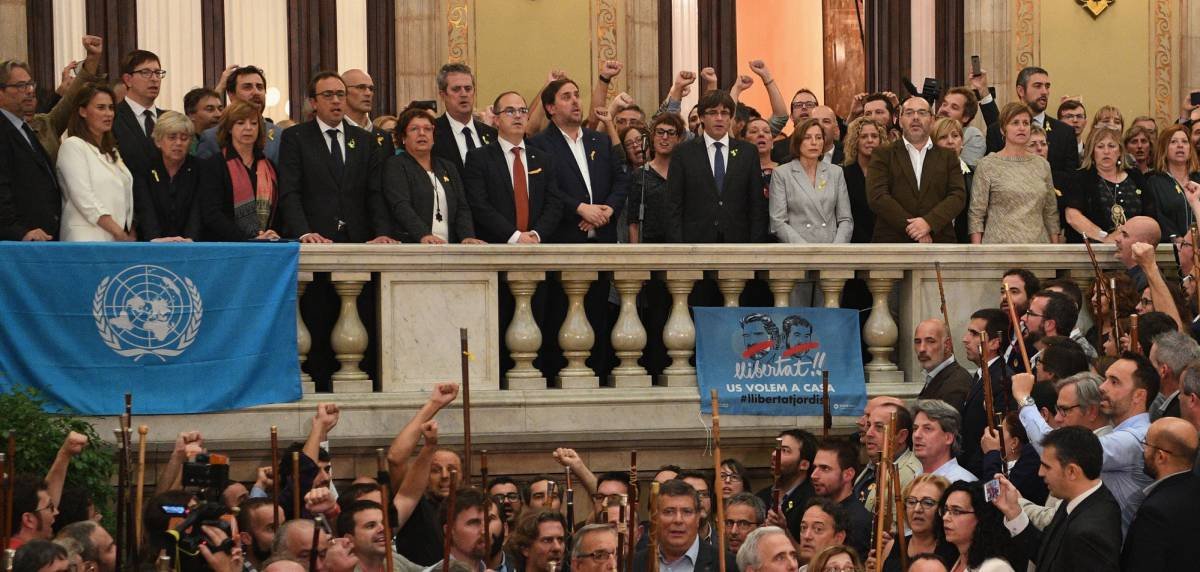 O deputado Carles Riera, porta-voz do grupo independentista CUP, afirmou que o Parlament assegurou que fosse um dia histórico. “Chegou a hora do povo. Nós nos autodeterminamos diante do Estado e ante as oligarquias catalãs”, declarou. Também admitiu que a Catalunha carece de estruturas de Estado e que terá, portanto, de iniciar esse processo constituinte com um contrapoder catalão frente “ao poder autoritário” da Espanha.