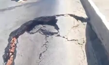 Asfalto cede e motorista colide carro no canteiro central do Retão de Manaíra