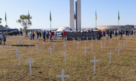 Sessenta manifestantes fincaram mil cruzes em frente ao Congresso Nacional na manhã deste domingo, 28, em homenagem às vítimas da covid-19. O...
