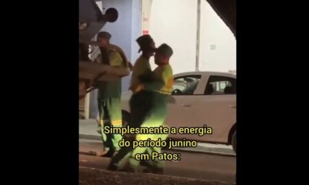 Uma dupla de garis entrou no clima de pré-São João e caiu no forró enquanto recolhia o lixo no Centro de Patos....