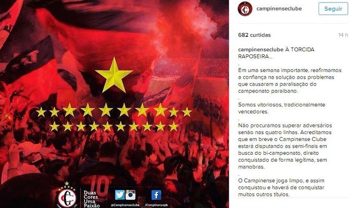 Raposa manda mensagem para seus torcedores e diz que confia na solução dos problemas causados pela paralisação do Campeonato Paraibano Já que...