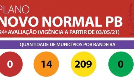 A 24ª avaliação do Plano Novo Normal Paraíba aponta que 100% dos municípios paraibanos encontram-se em bandeira amarela (94%) e bandeira laranja...