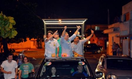 Acompanhado do governador Ricardo Coutinho, da vice-governadora Lígia Feliciano (PDT), e dos candidatos ao Senado Veneziano Vital do Rêgo e Luiz Couto...