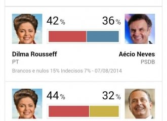 Segundo instituto, petista tem 42% das intenções de voto contra 36% de Aécio Encomendada pela Rede Globo, pesquisa Ibope sobre as eleições...