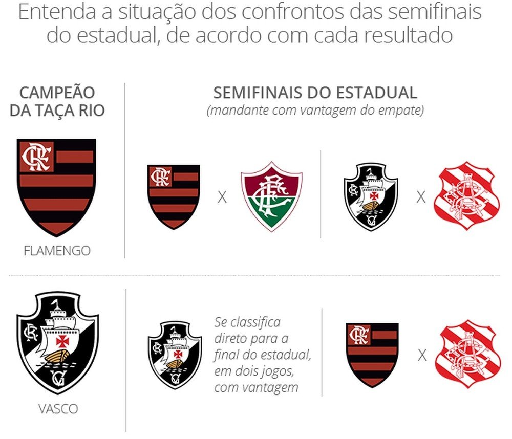 Haverá a disputa de duas semifinais: Flamengo x Fluminense e Vasco x Bangu. Neste cenário, Flamengo e Vasco terão vantagem do empate em jogo único para definir os finalistas do Carioca por terem vencido os turnos.