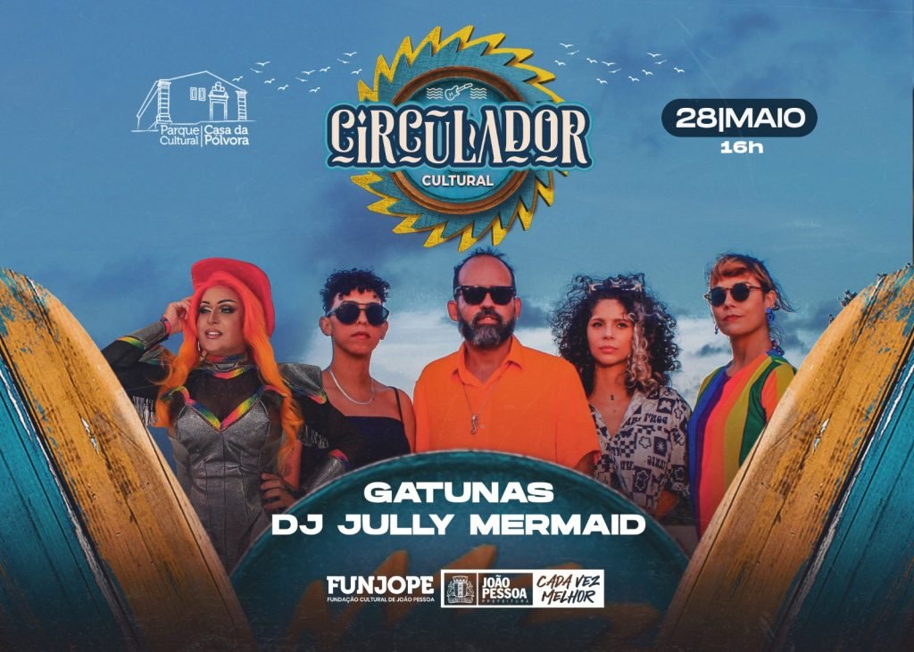 O projeto Circulador Cultural, realizado pela Prefeitura de João Pessoa, por meio da sua Fundação Cultural (Funjope), apresenta, neste domingo (28), o DJ Mermaid e a banda Gatunas. Será um entardecer com muita música e energia na Casa da Pólvora, Centro Histórico, a partir das 16h.