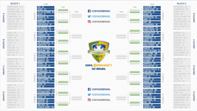 A CBF realizou nesta quinta-feira o sorteio da Copa do Brasil de 2017. A grande novidade da competição para a próxima temporada é que os confrontos das duas primeiras fases serão em jogo único. Na primeira fase, o mando do jogo único será do clube que estiver em posição inferior no Ranking Nacional de Clubes (RNC). O visitante terá a vantagem do empate. Na segunda fase, o mando de campo será definido por sorteio e o vencedor garante a classificação. Em caso de empate, a definição acontecerá na cobrança de pênaltis. A partir da terceira fase serão disputados dois jogos.