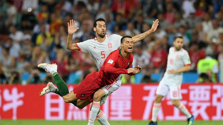 jogo mais esperado da primeira rodada, entre Portugal e Espanha, começou de forma eletrizante. Já no primeiro ataque português, no primeiro minuto da partida, Cristiano Ronaldo foi derrubado por Nacho na área, e o árbitro italiano do jogo apitou: pênalti. O atacante, melhor do mundo, fez valer seus adjetivos e abriu o placar: 1 a 0 para Portugal.