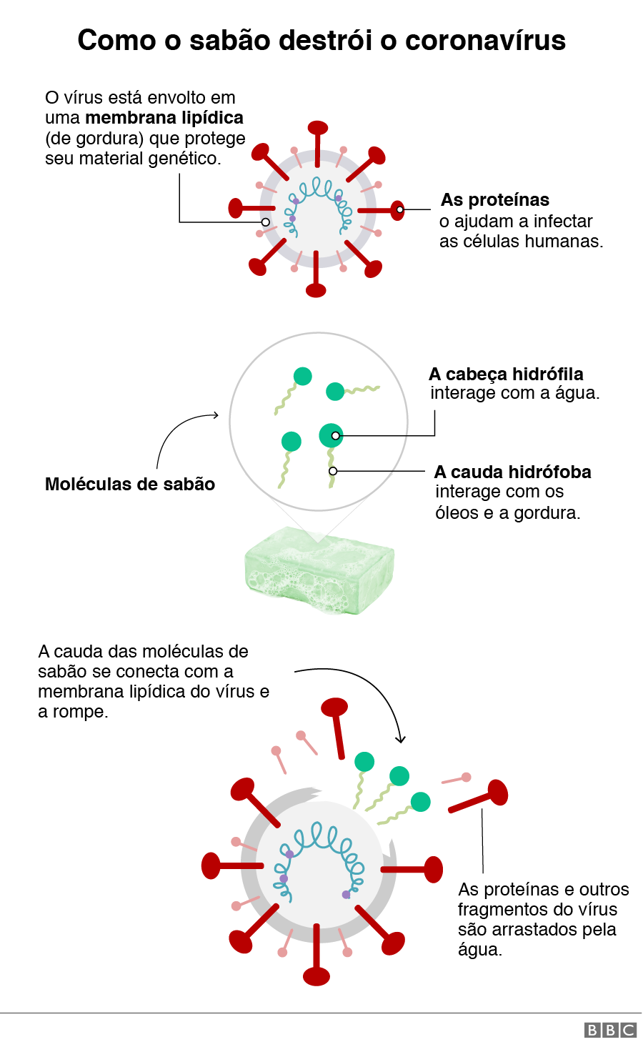 Diante do sabão, esse é o calcanhar de Aquiles do vírus.