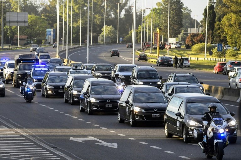 Um cortejo fúnebre com proteção policial iniciou a viagem até Rosario, cidade natal das vítimas, para o sepultamento.