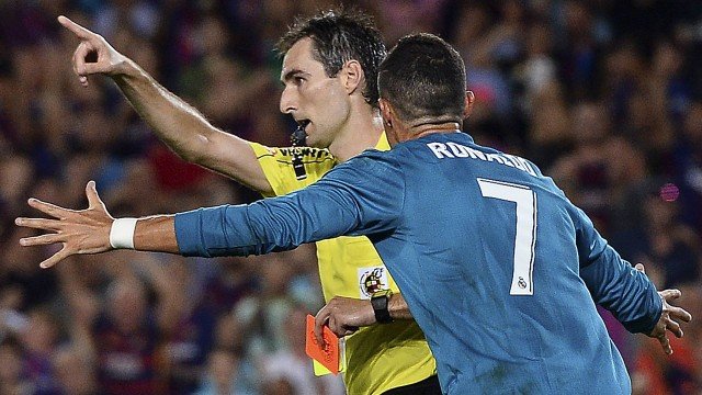 O Juiz Único de Competição suspendeu Cristiano Ronaldo por cinco partidas depois da expulsão e do empurrão no árbitro do jogo entre Real Madrid e Barcelona. Revoltado com o cartão vermelho, o atacante reclamou com o juiz Ricardo de Burgos Bengoetxea e o empurrou antes de deixar o campo, no Camp Nou.