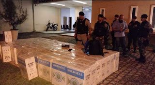 A Polícia Militar desarticulou o esconderijo de uma quadrilha responsável por um carregamento de aproximadamente três toneladas de cigarro. A carga, que não tinha nota fiscal, estava armazenada em 214 caixas, e estava sendo distribuída de um caminhão com placa do estado do Rio Grande do Norte para duas vans. A ação da PM aconteceu nas últimas horas da noite do sábado (1) e madrugada deste domingo (2), em um sítio na zona rural do município de Sapé, durante a Operação Nômade. Uma pessoa foi presa. Uma arma de fogo, munições, dinheiro, máquina de cartão de crédito, documentos, e carros também foram apreendidos.