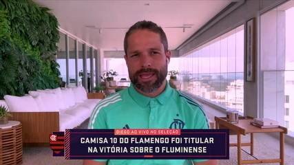 Titular do Flamengo na vitória por 2 a 1 sobre o Fluminense, Diego fez uma participação especial no Seleção SporTV desta quinta-feira para comentar o atual momento da equipe. O time comandado por Domènec Torrent está invicto há sete jogos e vem de quatro triunfos consecutivos, mostrando evolução a cada partida. Para o meia, porém, ainda há aspectos a serem melhorados.