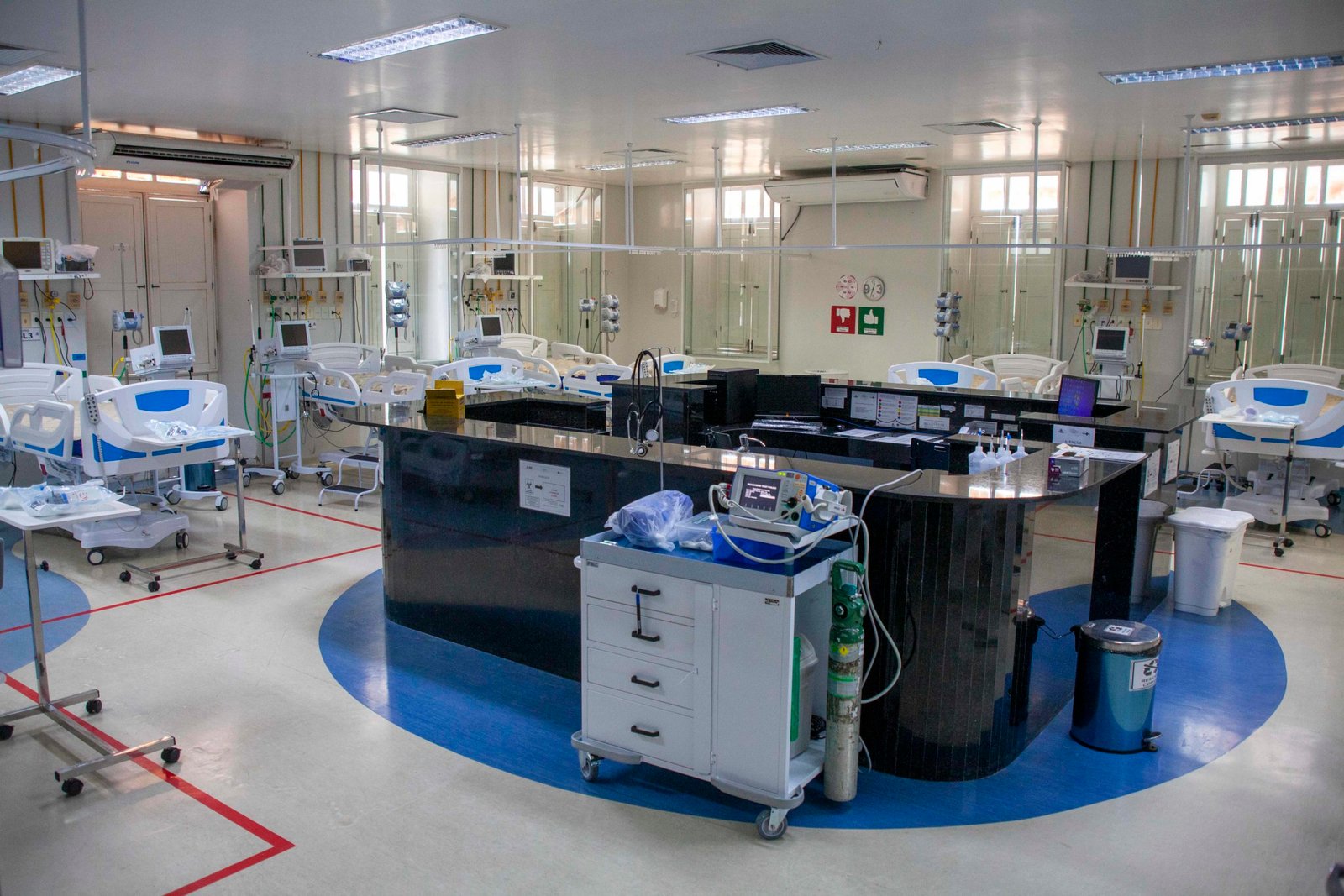 Dos leitos de UTI para adultos ativados em todo o Estado, 72% estão ocupados.