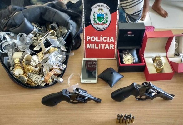 De acordo com a PM, os suspeitos invadiram a loja que fica localizada na Galeria Jardim e roubaram vários relógios. Segundo informações, os acusados teriam levado cerca de R$ 200 mil em objetos, mas a polícia não confirmou. A PM achou duas armas, 11 munições e 39 relógios com os acusados.