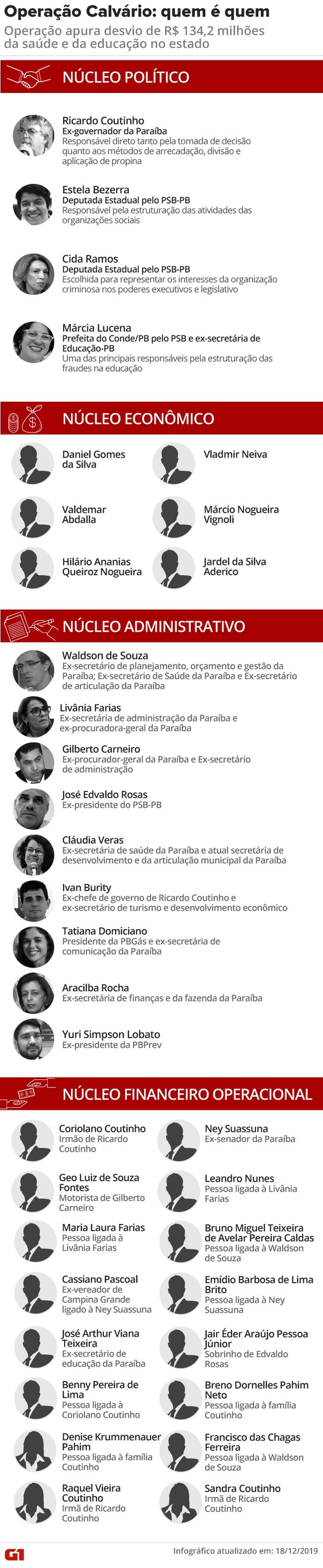 3. Núcleo administrativo: integrado por gestores públicos do Governo do Estado da Paraíba que solicitavam e administravam o recebimento de vantagens indevidas pagas pelos empresários para compor o caixa da organização em favorecimento próprio e de seu líder.