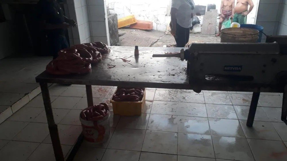 Além disso, conforme relatos do delegado e dos moradores, o frigorífico também funcionava como um abatedouro ilegal, exalando um odor forte. Foram encontradas carcaças de animais no fundo do estabelecimento, em uma área próxima ao rio.