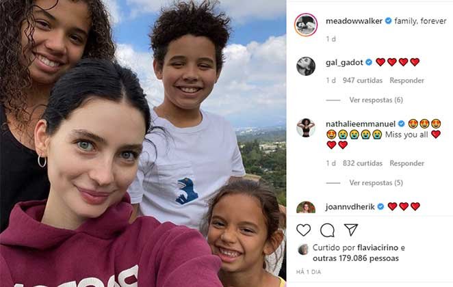 O post de Meadow teve mais de 172 mil curtidas e muitos comentários carinhosos. Gal Gadot, que atuou em Velozes e Furiosos 4, compartilhou emojis de corações, assim como Nathalie Emmanuel, de Velozes e Furiosos 7, que ainda comentou sentir saudades de todos.