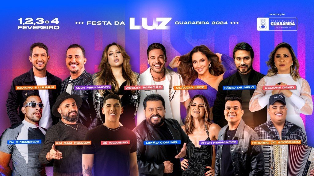 Como verificou o ClickPB, entram na lista de shows famosos com altos cachês e que irão se apresentar na Festa da Luz, em Guarabira, Zé Vaqueiro (R$ 330 mil) Iguinho e Lulinha (R$ 270 mil), Tarcísio do Acordeon (R$ 250 mil) e Vítor Fernandes (R$ 220 mil).