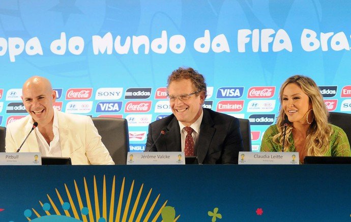 jeromevalcke_claudialeite-aldur É um prazer enorme representar meu país, somos um povo que sabe receber e comemorar. (Pitbull e Jennifer Lopez) são duas estrelas do cenáriomundial, muito talentosos e dois seres humanos de coração gigantes. Parecem dois brasileiros, vão sambar muito – disse Claudia, durante coletiva de imprensa ao lado de Pitbull, do secretário-geral da Fifa, Jérôme Valcke, e do pentacampeão Cafu, no auditório do Maracanã.