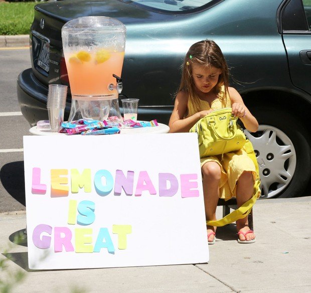 Anja, filha de Alessandra Ambrósio, surpreendeu os paparazzi ao vender limonada na porta de um restaurante de Los Angeles, neste domingo, 1º. Fofíssima com um vestidinho amarelo e uma bolsa da grife D&G no colo, a menina montou uma mesa para colocar seu produto e fez um cartaz onde se lia, em letras coloridas, a mensagem “Limonada é ótima” para atrair seus clientes.