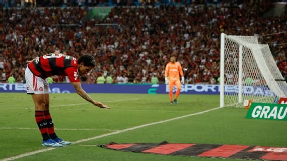 Até que aos 17, Pedro recebeu um lindo passe de Pulgar e encobriu o goleiro para colocar o Rubro-Negro na frente. O time seguiu pressionando e ampliou com Arrascaeta aos 28, após cruzamento de Cebolinha.