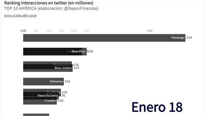 Além do Campeonato Argentino ser competitivo, “Los Milionarios” também disputaram a Copa Libertadores, o que foi fundamental para o crescimento. Até o período de agosto de 2018, o clube tinha 4 milhões de pessoas interagindo em seu Twitter. Depois disso, o número houve um aumento significativo, já que os argentinos entraram na fase oitavas de final da competição e ainda conquistaram a Taça.