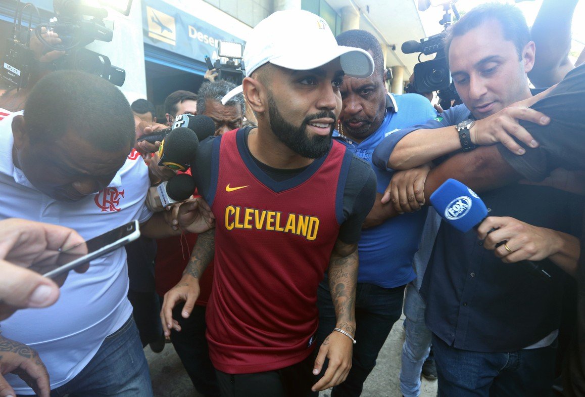 Novo reforço do Flamengo, Gabriel Barbosa já está no Rio de Janeiro. Emprestado pela Internazionale, da Itália, o atacante desembarcou na manhã desta quarta-feira na cidade para realizar exames médicos e assinar contrato até dezembro. Ao lado dos pais, ele foi recebido por cerca de 20 torcedores, aos gritos de “ão, ão, ão, Gabigol é do Mengão”.