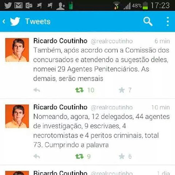 Ano passado tivemos a nomeação de 157 agentes, mais muitos entraram por indicação política e através de acordo (de boca – imagem twitter governador) entre alguns agentes e o governo. Isto aconteceu de abril a setembro/ 14, e os demais restantes (pouco mais de 70) estão se humilhando atrás do cumprimento de suas decisões.