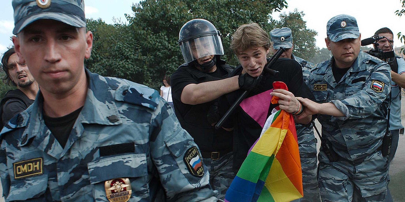 “Se virmos dois homens se beijando, diremos à polícia, então caberá à polícia decidir o que fazer”, disse o líder do grupo paramilitar, Oleg Barannikov.