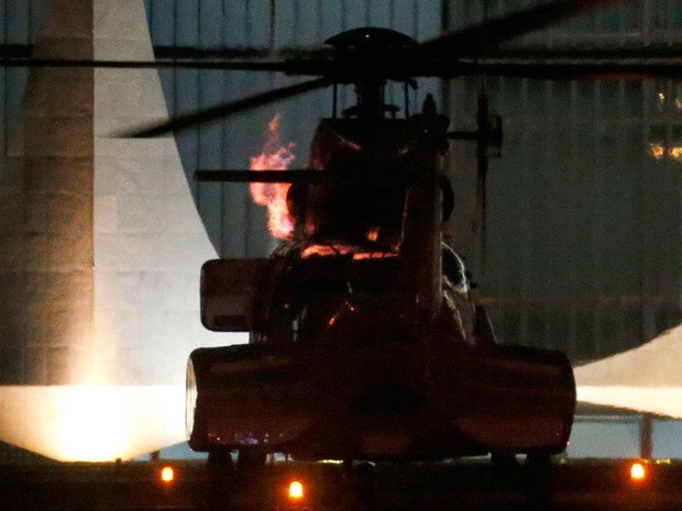 O helicóptero que levou a presidente Dilma Rousseff do Palácio da Alvorada à Base Aérea de Brasília na noite desta quinta-feira (24) soltou uma chama antes da decolagem, segundo informou a Força Aérea Brasileira (FAB).