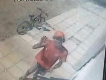 Nas imagens cedidas pelo proprietário do imóvel, é ´possível ver quando o suspeito chega em uma bicicleta, para o veículo na calçada da casa, simula conhecer os moradores e consegue pular o muro da residência após cortar a certa elétrica.