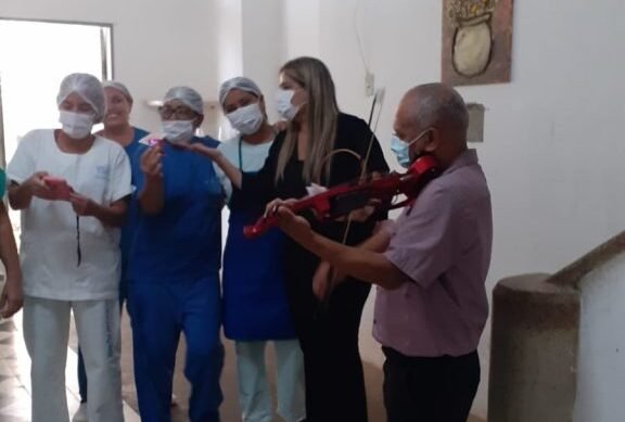 Um violinista também fez uma apresentação especial. Com seu violino, ele percorreu todos os setores do hospital, inclusive enfermarias e UTIs, levando música para as mulheres.