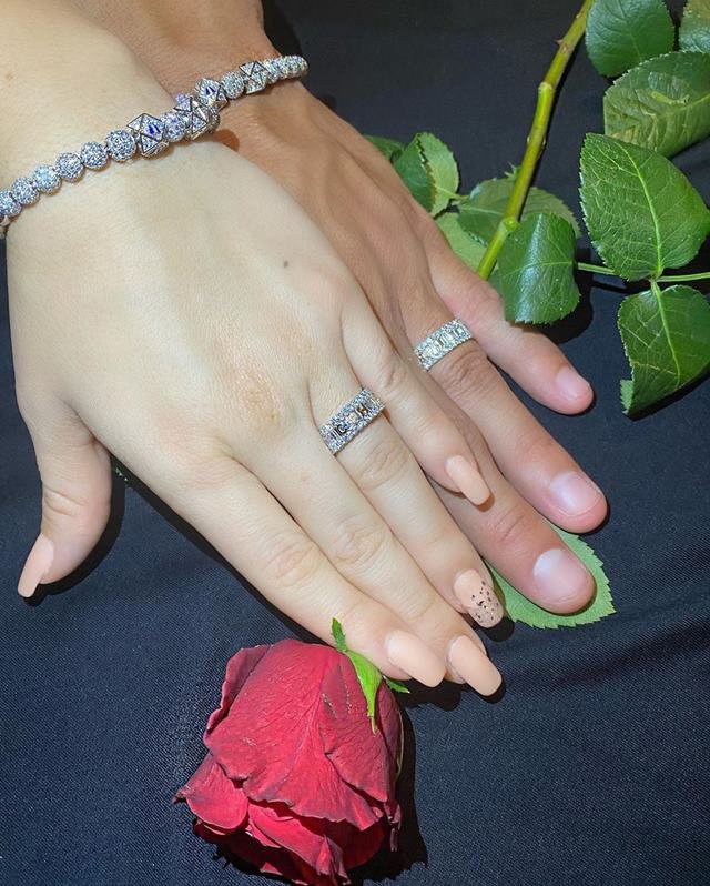 Em publicação no Instagram nesta sexta-feira (14/02/2020), o casal surge usando as joias. “Happy Valentine’s Day, meu amor. Que DEUS esteja sempre presente na nossa vida, no nosso lar, sendo sempre nosso alicerce!”, escreveu ele na legenda da imagem.