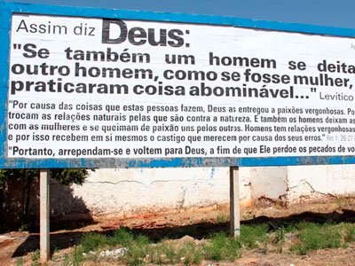 A expressão da religiosidade pode ser exercida livremente nos templos, na presença de fiéis, mas não por intermédio de propaganda de suas crenças. Com este fundamento, a 4ª Câmara de Direito Privado do Tribunal de Justiça de São Paulo manteve sentença de primeiro grau que proibiu uma igreja de Ribeirão Preto de publicar mensagens com trechos bíblicos condenando a homossexualidade. Caso descumpra, a multa diária é de R$ 10 mil.Em agosto de 2011, dias antes da 7ª Parada do Orgulho LGBTT da cidade, a igreja Casa de Oração de Ribeirão Preto instalou outdoors com mensagens citando trechos da Bíblia. Entre elas, uma dizia o seguinte: “Assim diz Deus: Se também um homem se deitar com outro homem, como se fosse mulher, ambos praticaram coisa abominável”. De acordo com o processo, o líder religioso responsável pelo ato afirmou tratar-se de mensagem para denunciar o que diz ser pecado da homossexualidade.