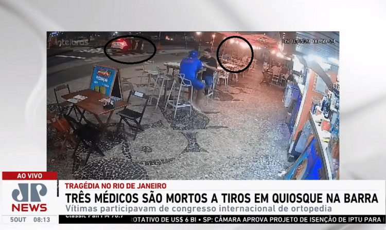 Quatro médicos de São Paulo que participariam de um congresso no Rio de Janeiro nesta semana foram baleados na madrugada desta quinta-feira, 5, em um quiosque na Barra da Tijuca, na zona oeste da capital fluminense. Eles estavam conversando e consumindo no local quando foram surpreendidos por homens fortemente armados, vestidos de preto, que pararam o carro em frente ao estabelecimento e efetuaram os disparos. Três morreram: Marcos Andrade Corsato, de 62 anos, Perseu Ribeiro Almeida, 33, e Diego Ralf Bomfim, 35. Este último é irmão da deputada federal Sâmia Bomfim (Psol-SP). Daniel Sonnewend Proença, 32, levou três tiros, mas sobreviveu e está no Hospital Municipal Lourenço Jorge. Ele deve ser transferido para uma unidade particular.